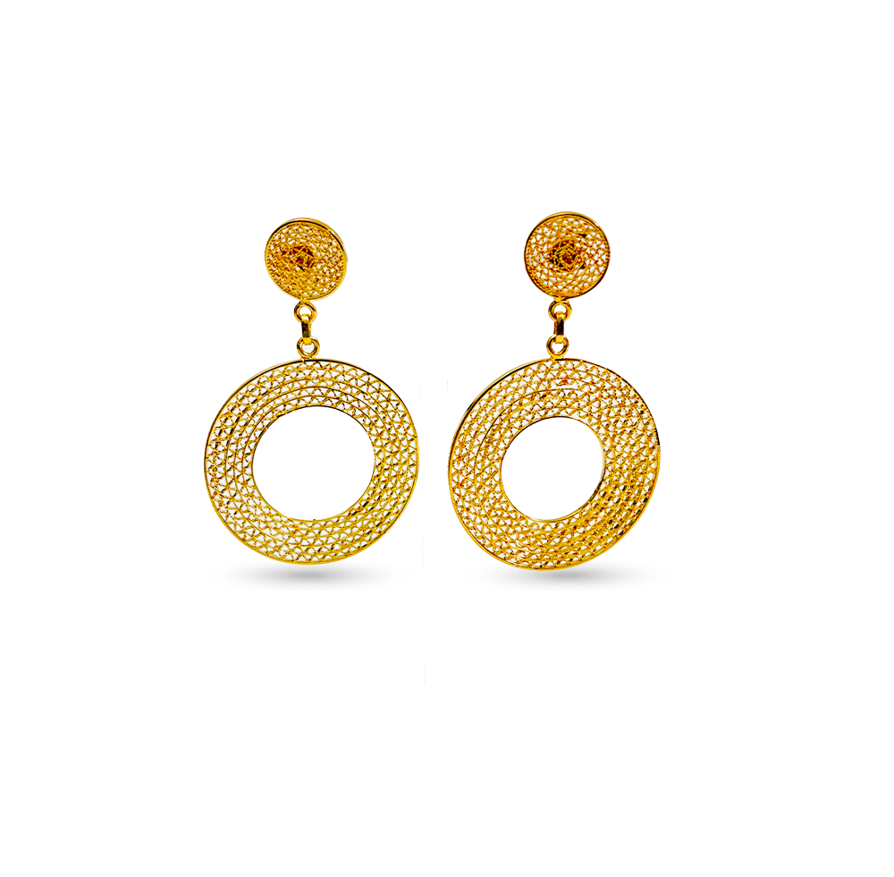 Earrings with zigzag circles, made of bronze with copper using the filigree technique and plated with 24k gold. 100% handmade. The meaning of the circle, with no beginning or end, symbolizes the essence of life, expressing wholeness and unity.