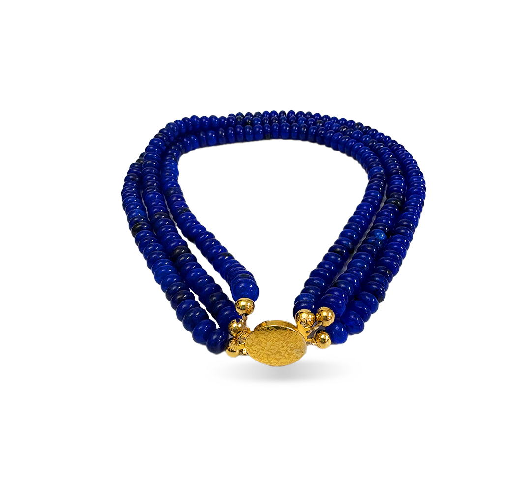 This choker features three layers of blue jade (a symbol of peace and reflection).