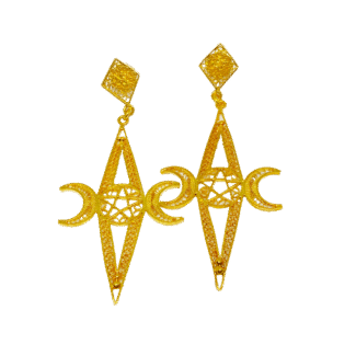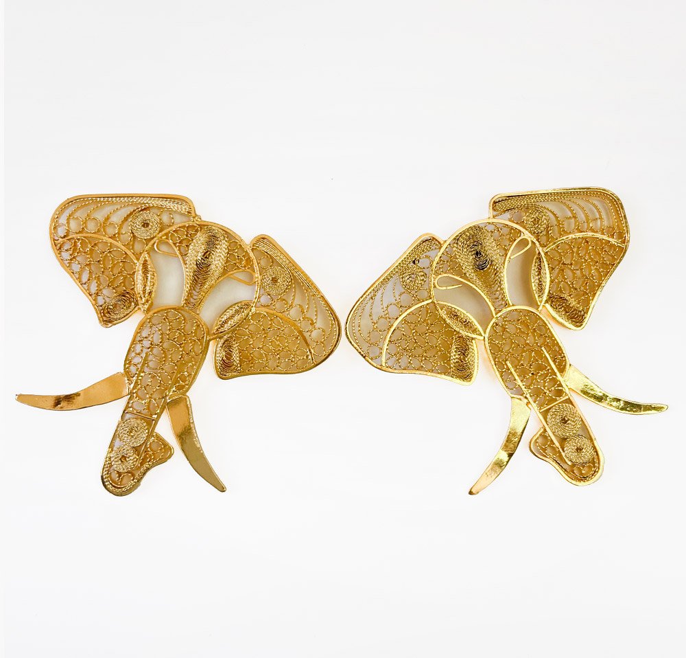 Bronze and copper threads with 24k gold plating. Crafted using handmade filigree technique.