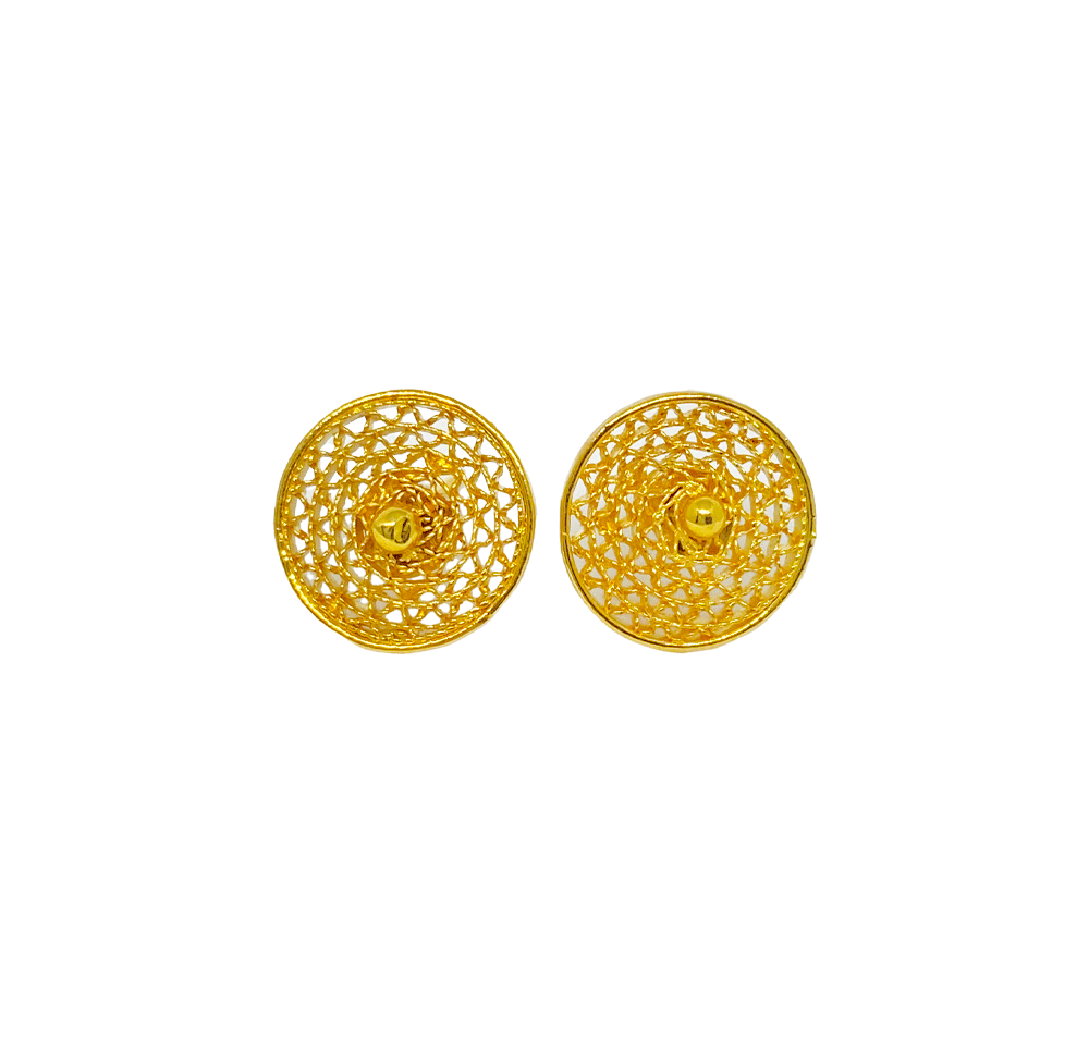 Bronze and copper threads with 24k gold plating. Crafted using 100% handmade filigree technique.
